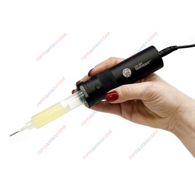 Дозатор подходит для шприцев обьемом 10сс, 30сс и 50сс. Можно использовать с клеем, канифолью, паяльной пастой и т.д. В наборе 5 мягких насадок разного диаметра.