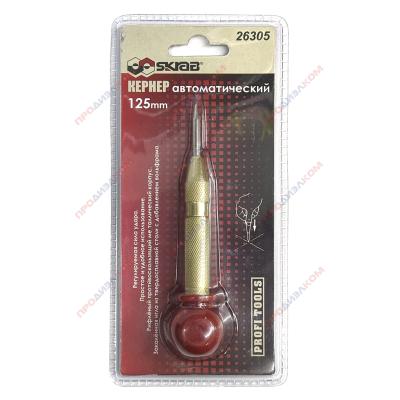 Кернер автоматический по металлу 125 х 2 мм это разметочный инструмент по металлу. Изготовлен из высококачественной закаленной инструментальной стали с добавлением вольфрама, обладает высокой прочностью. Имеет антикоррозийное покрытие, рифленый корпус, эргономичную пластиковую рукоятку. Длина изделия 125 мм, диаметр бойка или иглы 2 мм. Боек дополнительно подвергнут закалке для увеличения твердости. Кернер служит для нанесения разметки на металлические поверхности перед сверлением. Надавливание на корпус кернера разжимает стопорный механизм, который делает отметину на детали или заготовке.