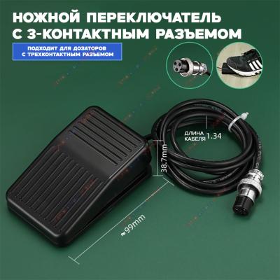 Педаль для регулировки поступления пасты для дозатора BY-981 с трехконтактным разъемом. Длина педали 99 мм, высота 38,7 мм.