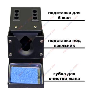 Универсальная металлическая подставка для паяльника с ванночкой. В подставке имеется полость для металлической губки.