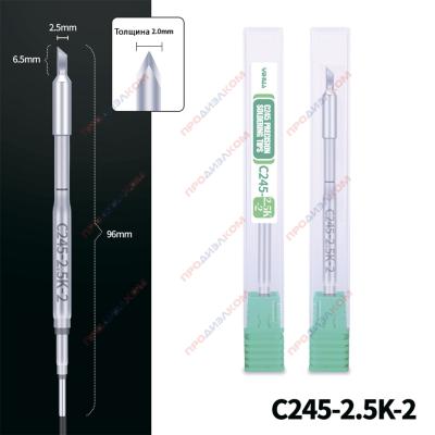 Сменное прецизионное жало, совместимое с паяльниками серии C245. Имеет форму «нож» шириной 2,5 мм, что обеспечивает отличный тепловой контакт и позволяет выполнять как точную, так и грубую пайку. От стандартного ножа 2,5 отличается толщиной, которая больше на 0,5 мм и составляет 2 мм